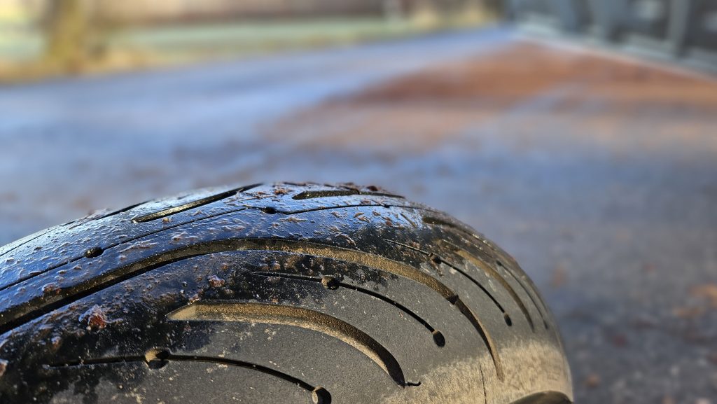 Der Reifen wärmt sich durch leichtes Beschleunigen und Bremsen relativ schnell auf – ein echter Vorteil bei niedrigen Temperaturen und Nässe. Im Sommer allerdings möchte ich ihn nicht mehr fahren. Schon bei den ersten wärmeren Tagen konnte man zusehen, wie sich die weiche Gummimischung schneller von der Lauffläche verabschiedete. Von November 2025 bis Ende März 2026 hat der Franzose rund 7.000 Kilometer gehalten – zu 95 Prozent auf kurvigen Landstraßen, der Rest auf der Autobahn. Für Regen und Kälte top, für Hitze eher ein Verschleißexperiment.