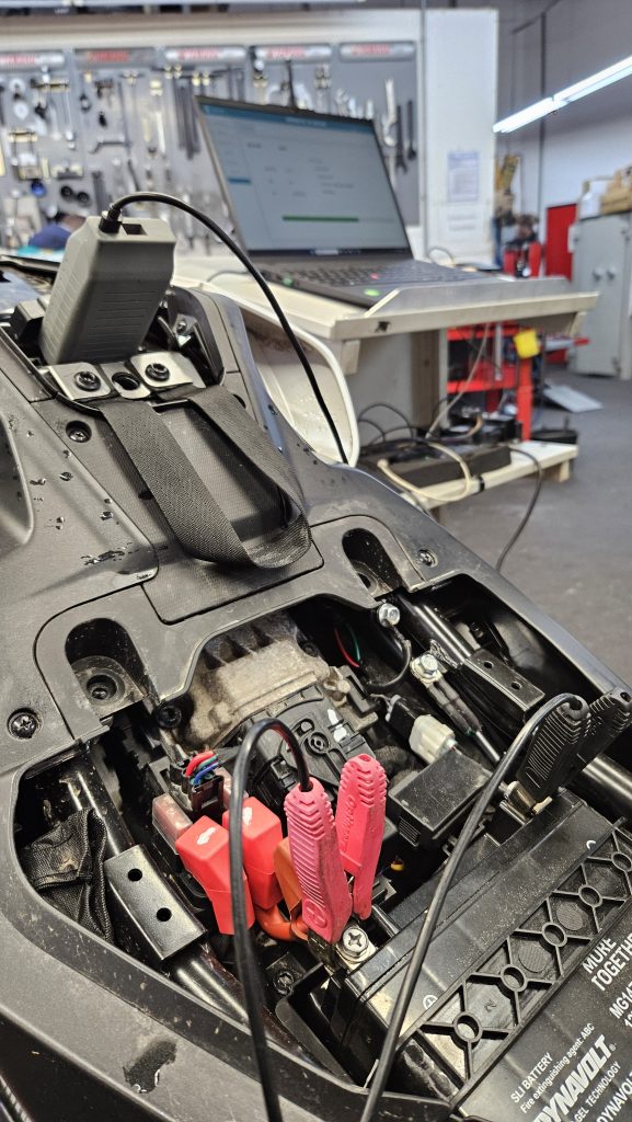 Weniger nachvollziehbar ist allerdings der Ablauf beim Update-Check für die jeweilige CFMOTO. Dieser wird über ein Laptop durchgeführt und muss jedes Mal komplett von vorne gestartet werden. Eine Art „Das ist neu, ersetze Alt gegen Neu“ scheint es nicht zu geben. Stattdessen läuft der gesamte Prozess jedes Mal erneut komplett durch – was entsprechend zeitaufwendig ist und in Zeiten von Over-the-Air-Updates fast schon ein wenig aus der Zeit gefallen wirkt.