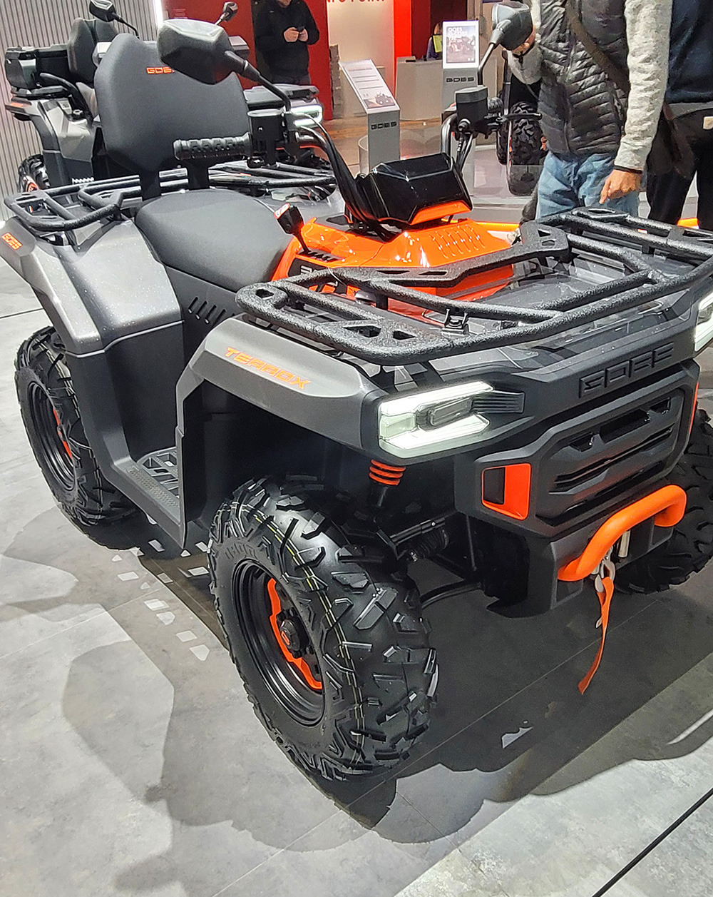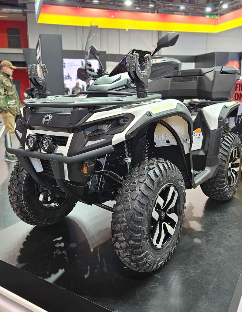 Die bekannten nordamerikanischen Marken Polaris und Can-Am hielten sich eher bedeckt. Gut, es handelt sich um die weltgrößte Zweira-Messe – aber ein paar ATVs verirren sich ja doch immer ins Rampenlicht. Bei Can-Am fand man neben einer wahren Elektro-Sintflut immerhin noch eine Outlander Max XT-P T 1000R mit Verbrennungsmotor. Sie stand etwas verschüchtert im Hintergrund, als wolle sie ihren batteriegetriebenen Geschwistern nicht den Strom abdrehen. Eine einzelne Outlander Electric samt offenem Antriebsstrang war ebenfalls ausgestellt – der Andrang hielt sich, sagen wir, höflich zurück.