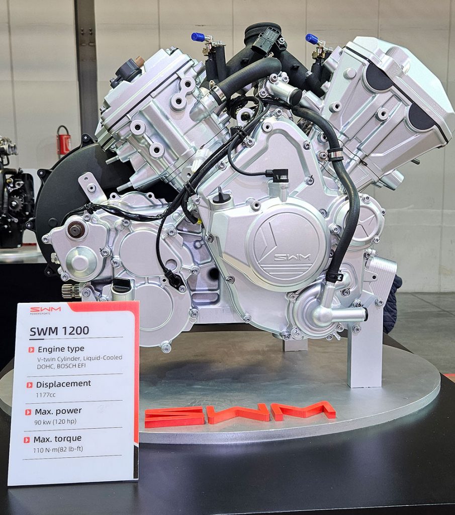 Und dann droppt SWM casually die Info, dass man eine Zweizylinder mit fast 1200 Kubik hat (Bild siehe ganz oben) – und zeigt den auch etwas versteckt am hinteren Ende vom Messstand. Mehr Understatement geht gar nicht.